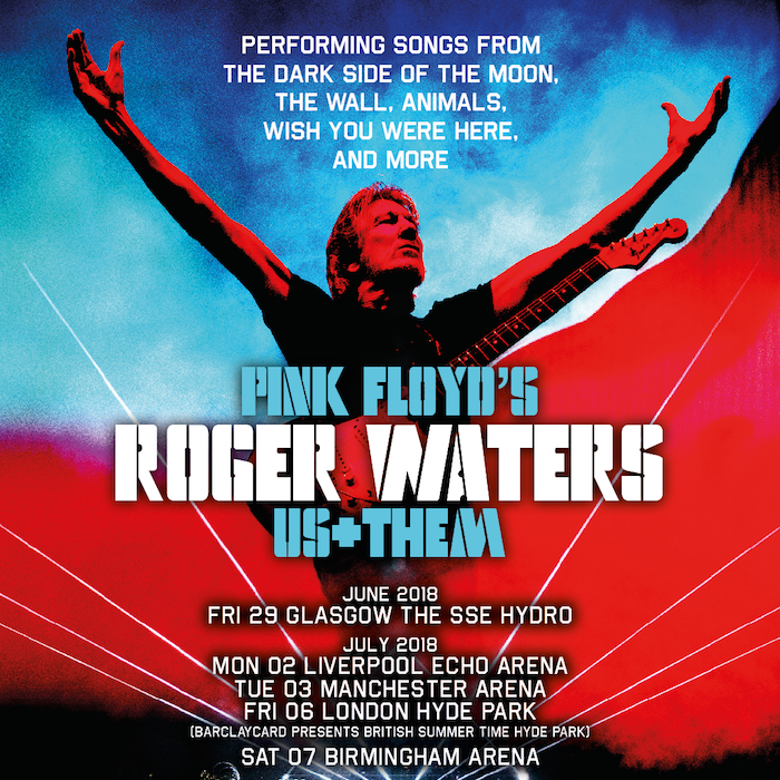 Roger Waters has announced tour dates for summer 2018 that will see him taking his pioneering Us + Them tour to the UK. RThe Pink Floyd member is set to play Glasgow, Liverpool, Manchester and Birmingham with his critically-acclaimed show as well as a date at British Summer Time in Hyde Park.