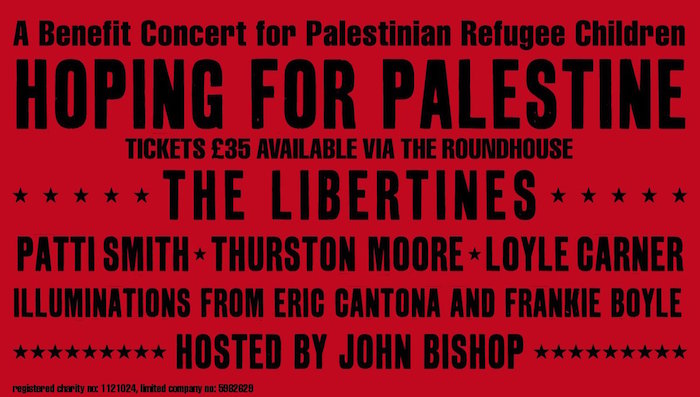 Co-founder of the HOPING Foundation Bella Freud said in a press release: “With these outstanding rockers and artists, performing for Hoping at the Roundhouse on June 4th – giving their time and their talent – we are able to raise awareness for the Palestinian refugee children we support, and hold in our hearts.”