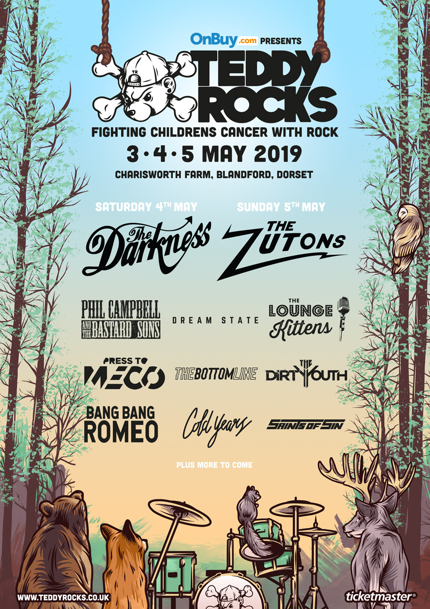“This is our biggest line up yet! The Darkness and The Zutons have some of the biggest hits of our generation and being able to bring them to our small town is an honour. We are working harder than ever to keep growing the festival and to help make a positive impact on so many children’s lives affected by Cancer. The more people that buy tickets for this event, the more good we can do for those who need it! Please come and join our fight and have the best time whilst doing so!” says Teddy Rocks Organiser Tom Newton.
